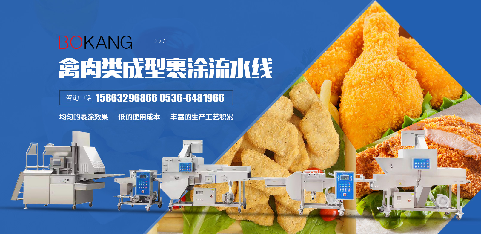 我們是一家生產預制調理類成型裹涂設備的廠家。為您提供產品裹涂解決方案。經過多年的努力與革新,既可給食品工業的用戶提供生產線中的單臺設備,也可以提供多種設備組成的完整生產線。目前生產的食品設備已出口多個國家。